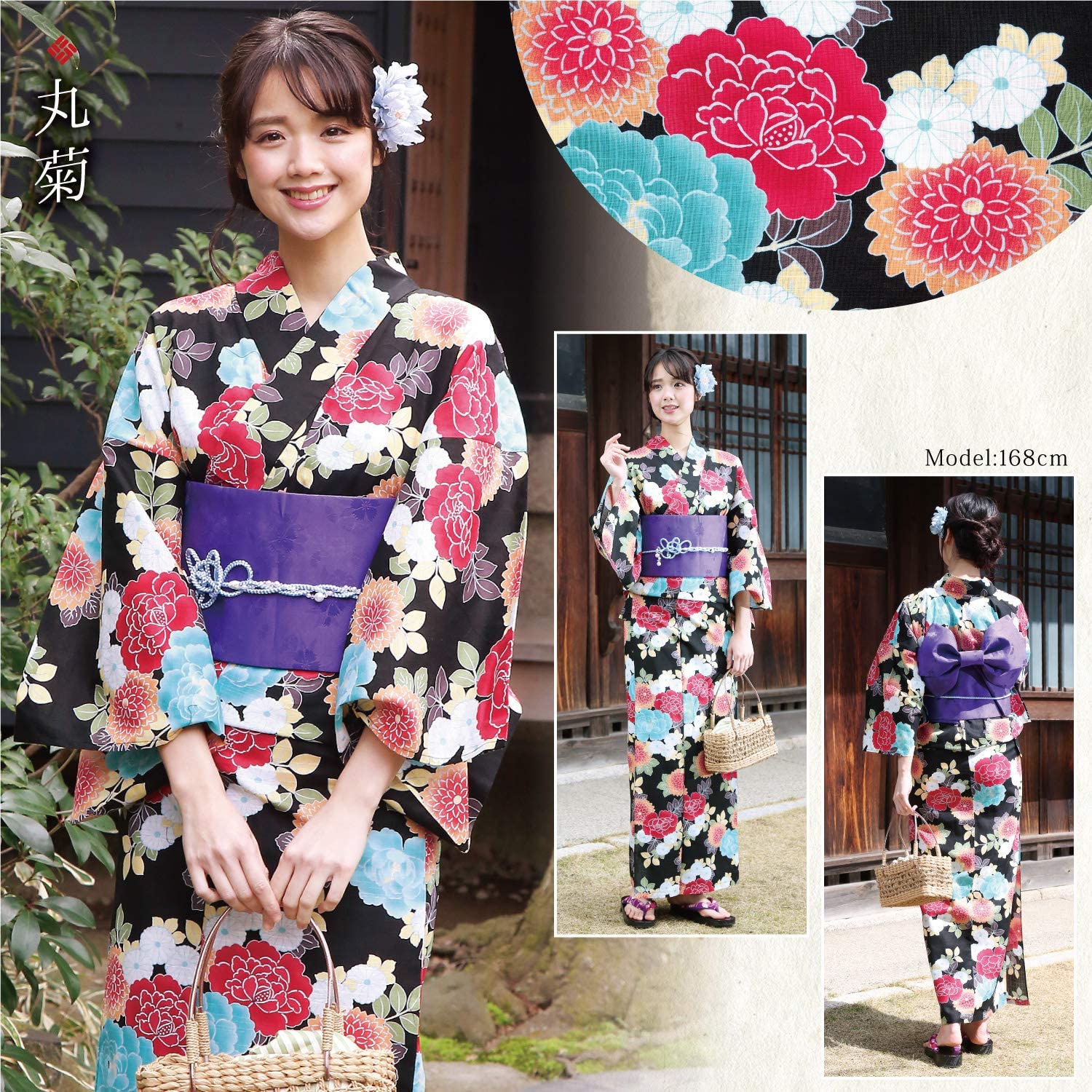 3-piece Yukata set (yukata, flat belt, geta)