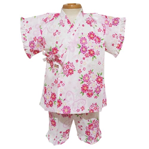 Cute white jinbei with pink cherry blossam (95cm)